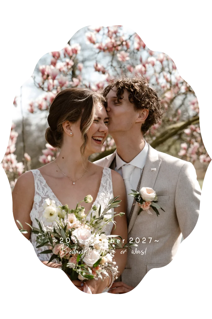 Hoe leuk om je gasten na afloop van jouw bruiloft nog te verrassen met een aandenken in de brievenbus! Deze leuke bedankkaartjes verstuur je na de bruiloft. Bewerk dit kaartje geheel naar wens in de online editor!