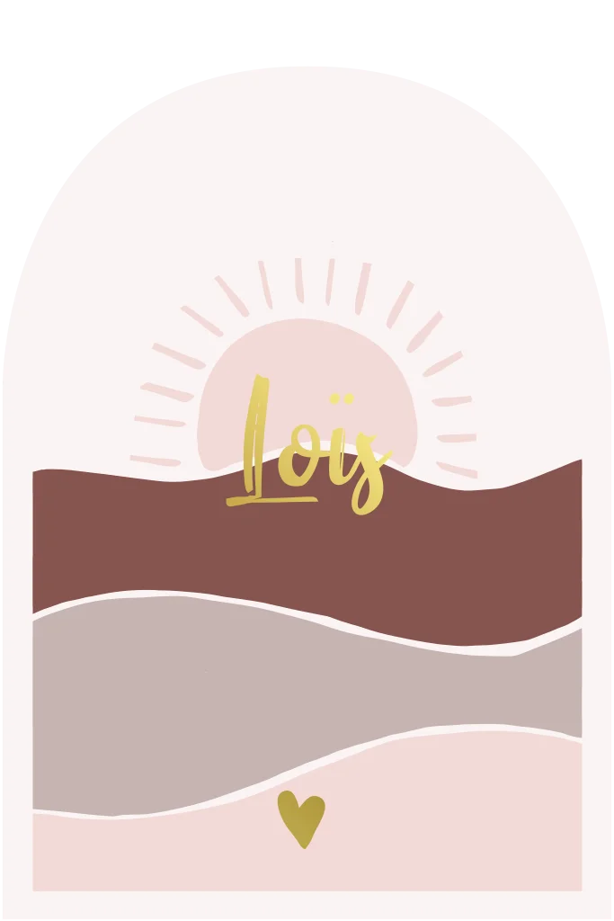 Meisjes geboortekaartje met roze en roest kleuren met goudfolie. Pas het geboortekaartje in boogvorm naar wens aan in de online editor!