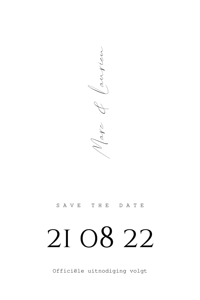 Save the date in boogvorm met zwarte tekst tegen een witte achtergrond. Minimalistisch geboortekaartje.