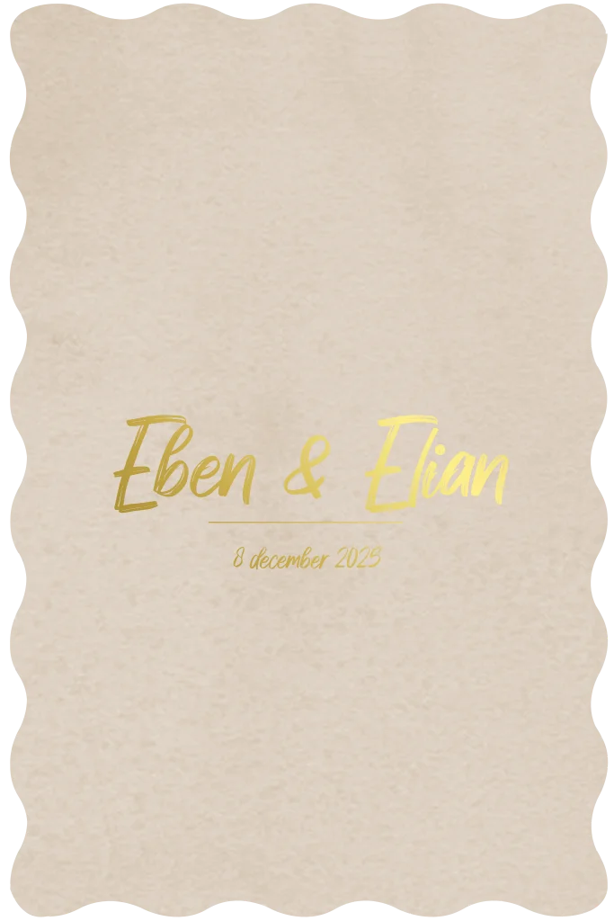 Het chique zandkleur geboortekaartje met gestanste rand en goudfolie is perfect voor jongetjes of meisjes. Pas het kaartje naar wens aan in de online editor. Dit kaartje is uniek en perfect voor een chic en stijlvolle aankondiging. De gestanste rand geeft het kaartje een extra luxe uitstraling, terwijl de goudfolie accenten perfect uitkomen. Het kaartje is aanpasbaar in de online editor, zodat je precies het ontwerp krijgt dat je wilt. Of je nu kiest voor een rustige of opvallende achtergrond, het kaartje zal er altijd chic uitzien.