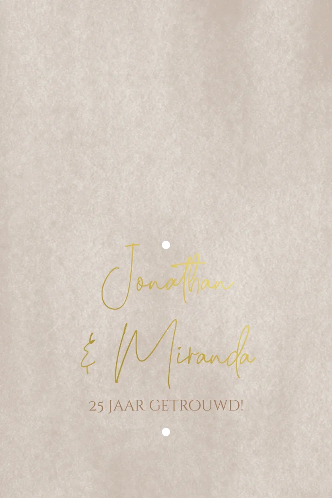 Chique minimalistische jubileumkaart met sierlijk lettertype en gaatjes waar je een droogbloemetje door kan steken.