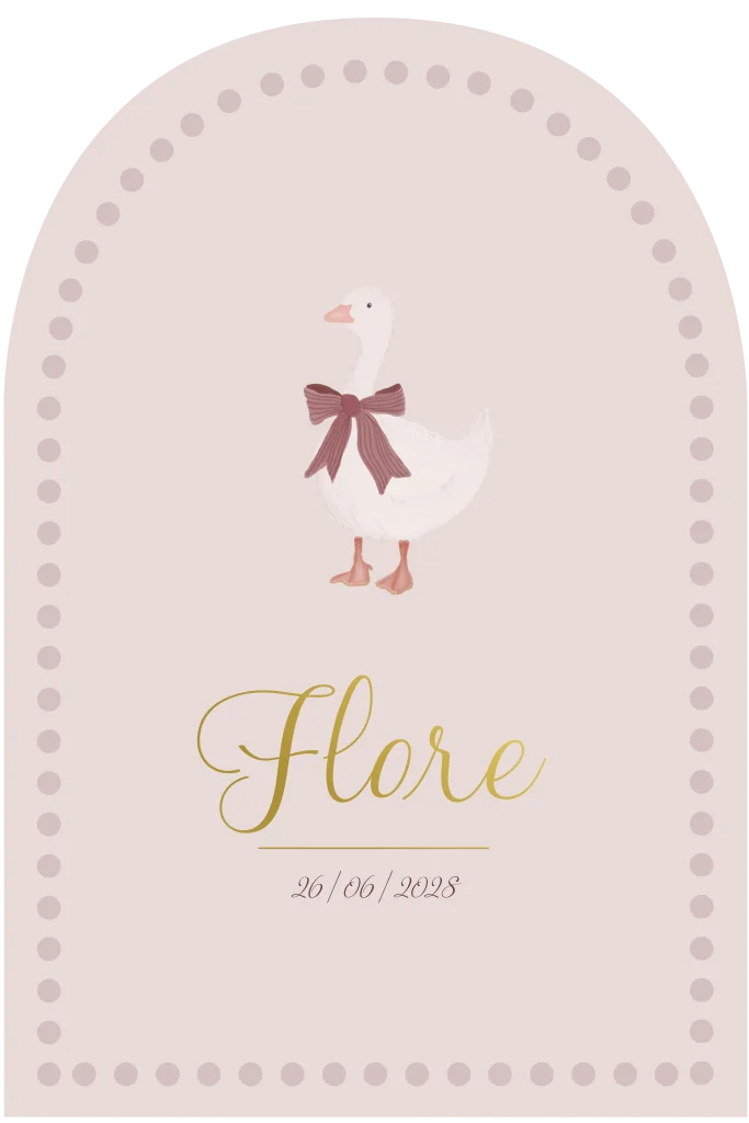 Meisjes geboortekaartje met gans en strik. Pas dit kaartje naar wens aan in de online editor!