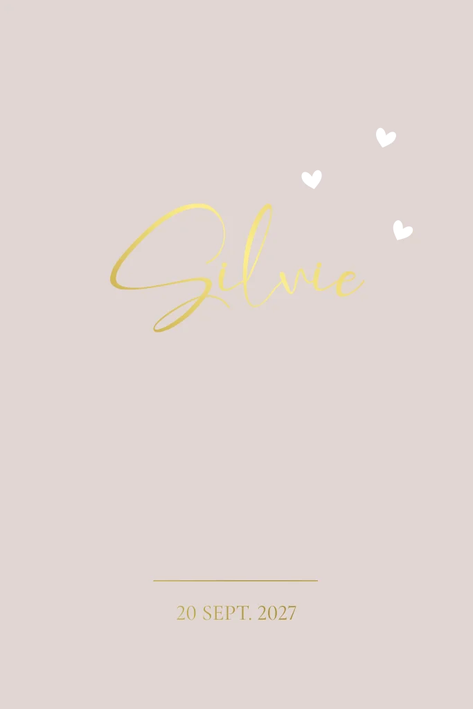 Lief meisjes geboortekaartje in lichtroze / lila met gestanste hartjes. Je kunt deze kaart naar wens aanpassen en een proefdruk bestellen voor €2,50!