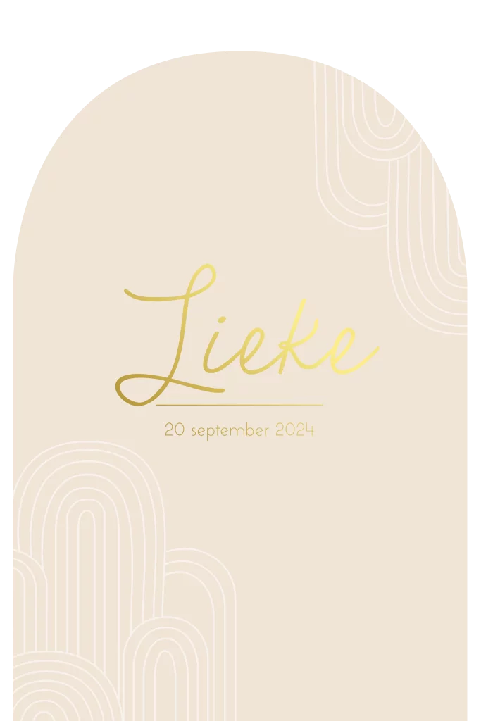 Meisjes geboortekaartje zand met goudfolie boogvorm