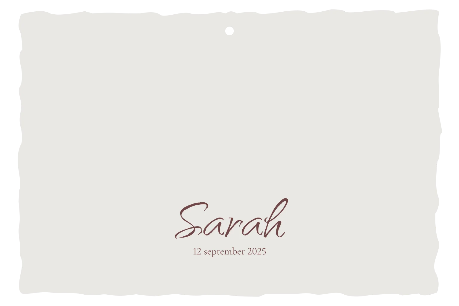 Rustiek, nostalgisch geboortekaartje met een 'oude' look & feel door de ruwe rand. Pas dit geboortekaartje naar wens aan en maak het helemaal jouw kaartje! Mooi met een tassel of een lintje door het gaatje!