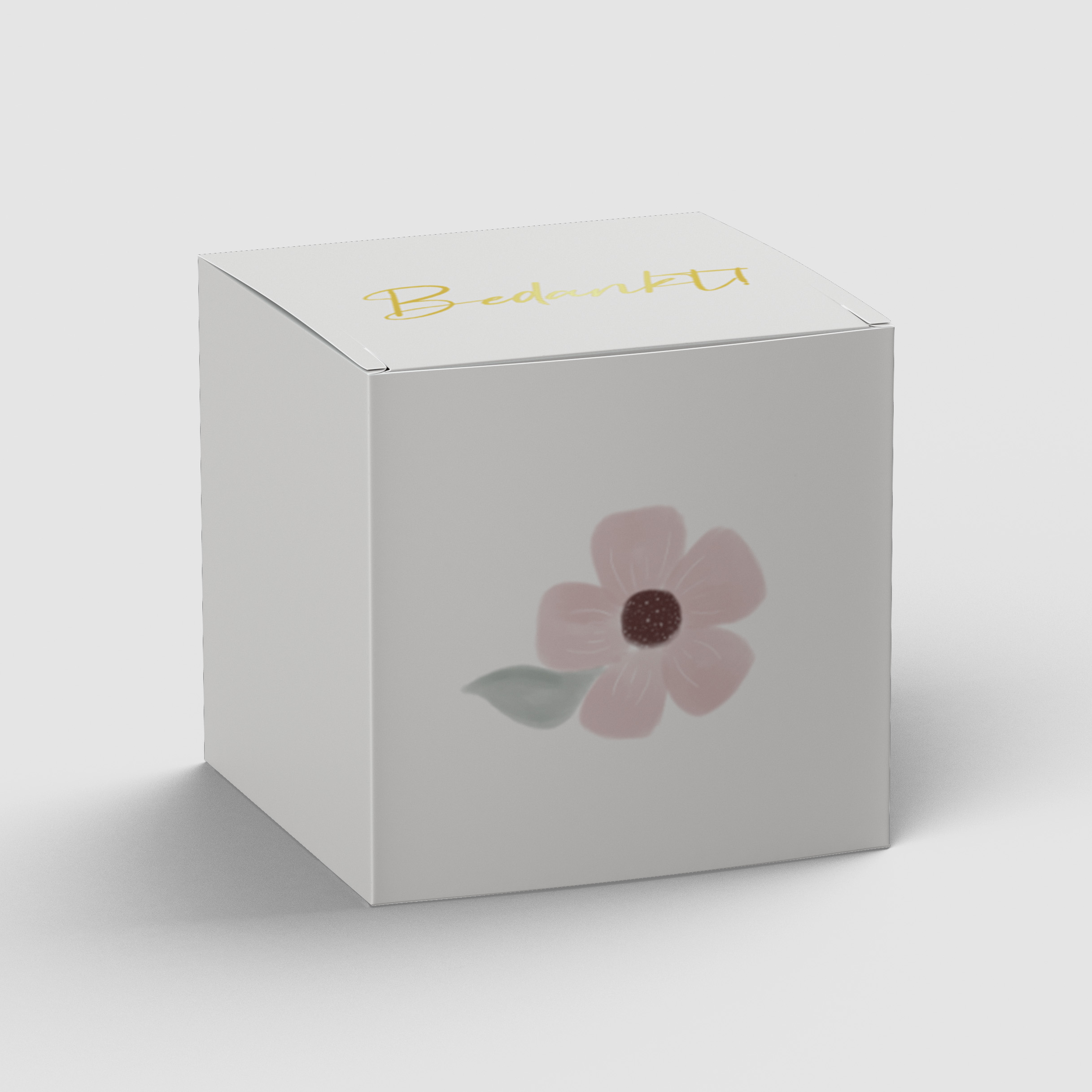 Doopsuikerdoosje bedankt met bloemen. Bewer dit doosje geheel naar wens in de online editor.