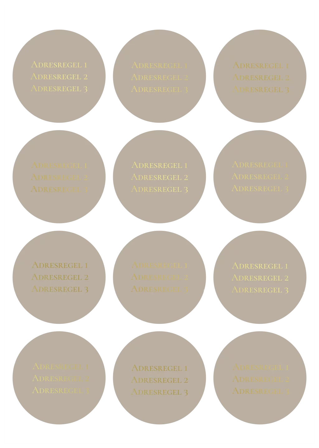 Zandkleur ronde adresetiketten met goudfolie tekst. Pas de etiketten naar wens aan!