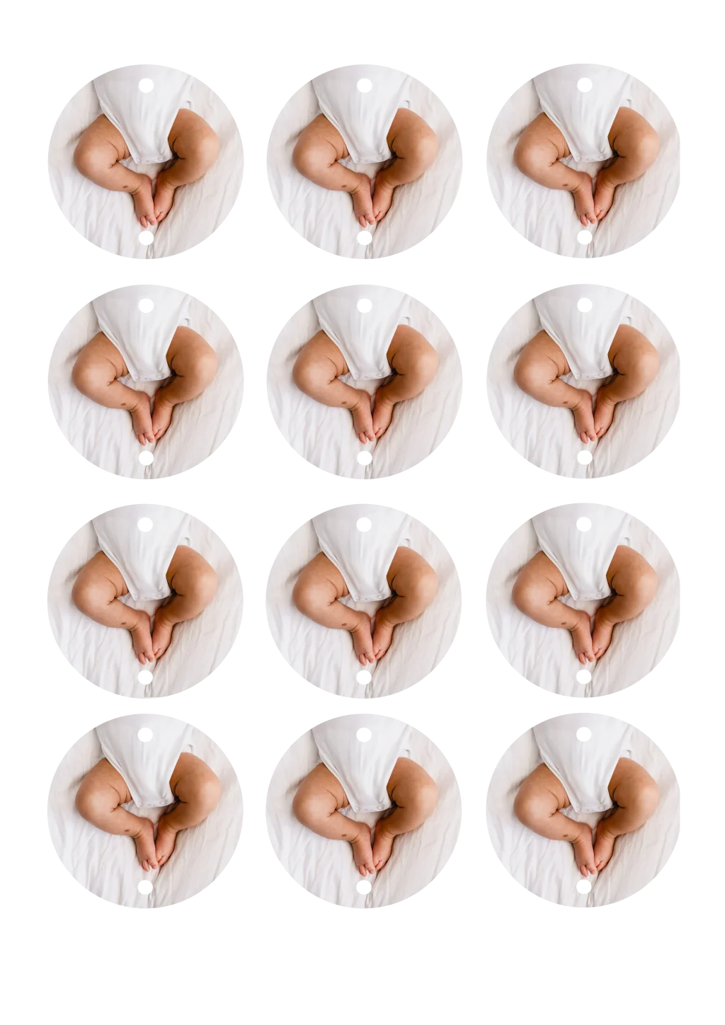 12 ronde labels met gaatjes aan beide zijden. De labels hebben het formaat 55x55mm.