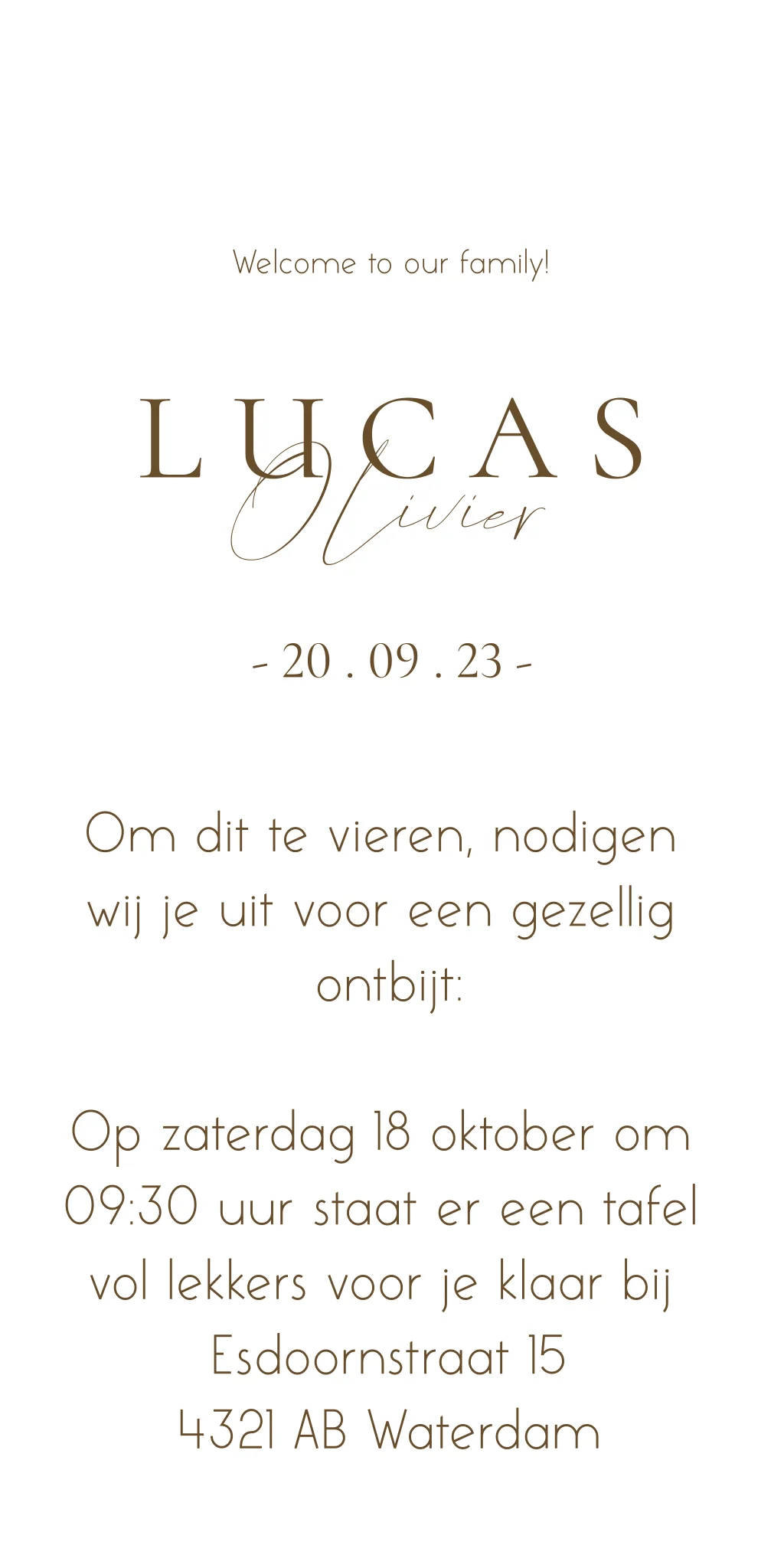 70x35 label met een uitnodiging voor het kraamontbijt.Bewerk dit label nog geheel naar wens in de online editor.