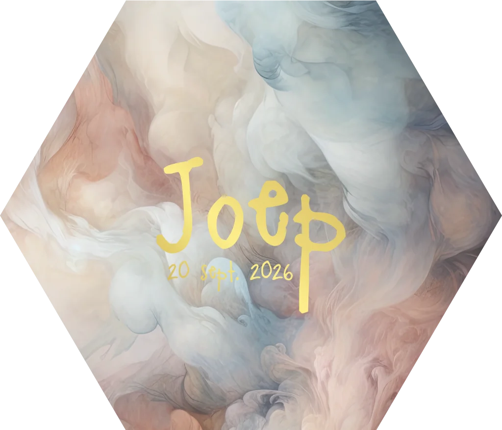 Hexagon sticker wolken Joep. Bewerk deze sticker geheel naar wens in de online editor.
