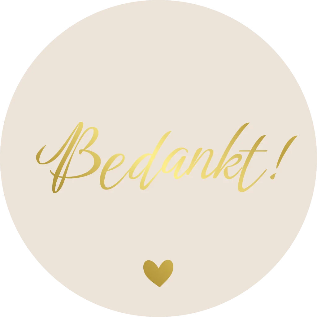 Sticker 59mm zand met tekst 'bedankt'. Bewerk deze sticker geheel naar wens in de online editor.