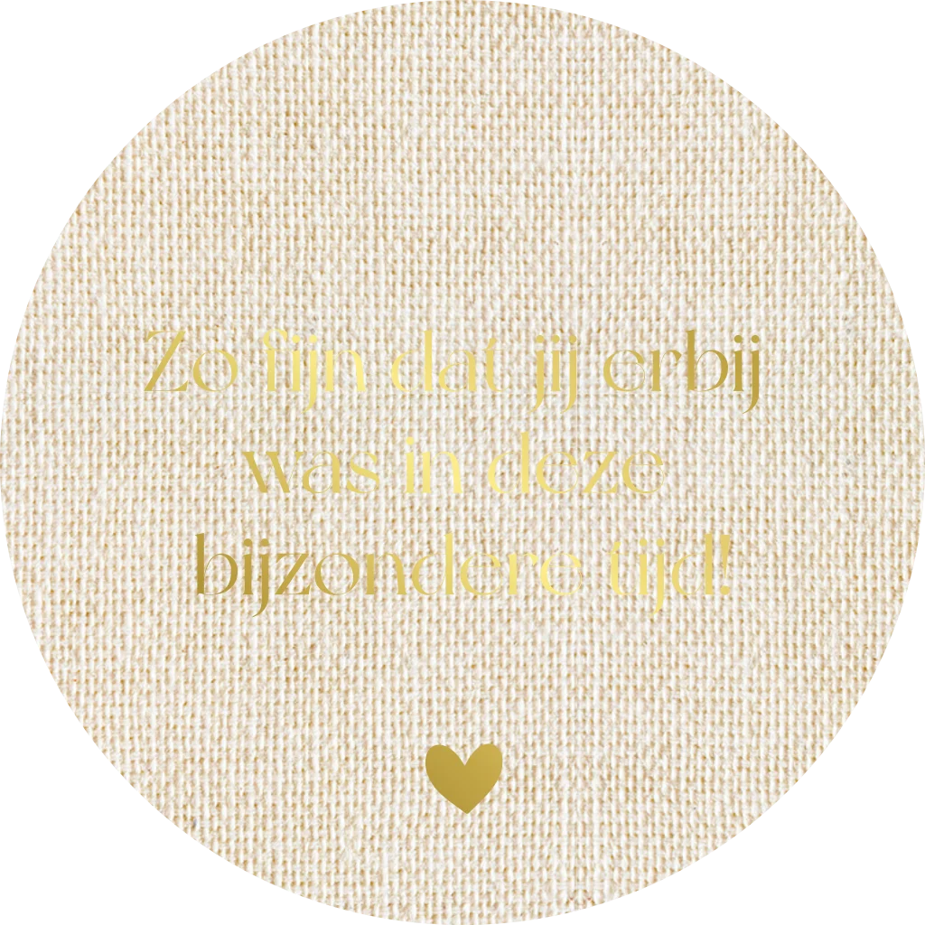 Sticker 44mm rond met tekst en hartje. Bewerk deze sticker geheel naar wens in de online editor.