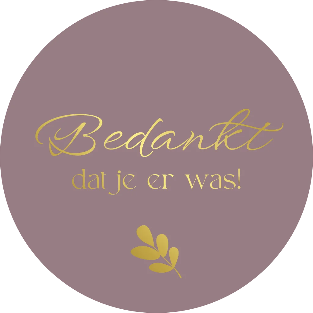 Sticker mauve met tekst 'Bedankt dat je er was'. Bewerk deze sticker geheel naar wens in de online editor. Passend bij trouwhuisstijl L'amour Blush.