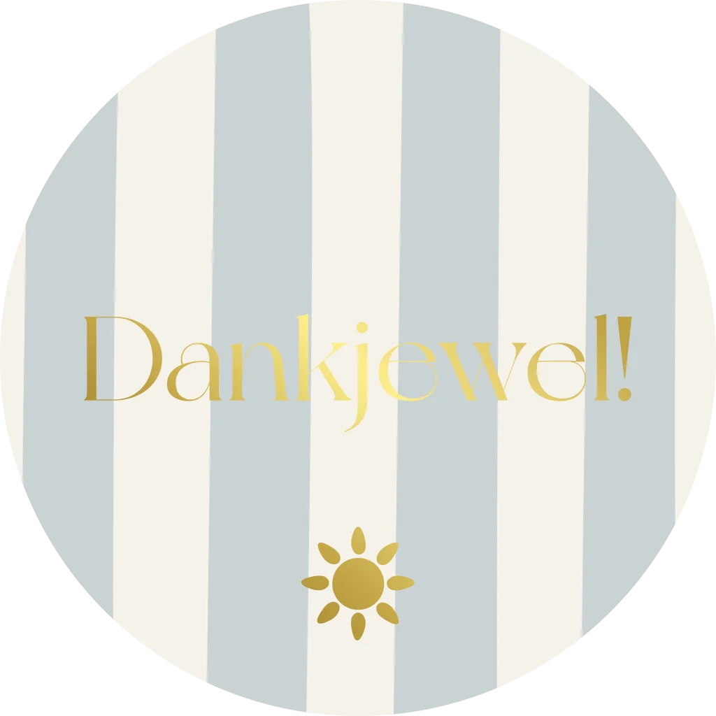 Sticker 59mm strepen met tekst 'dankjewel'. Bewerk deze sticker geheel naar wens in de online editor.