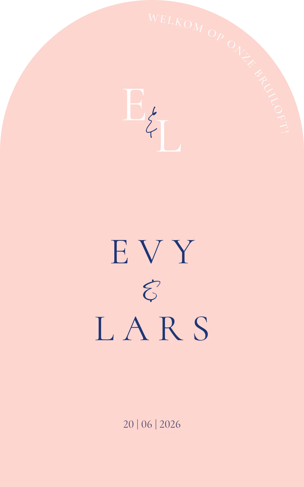 Mooi welkomstbord in lichtroze met blauwe tekst. Je kunt het bord helemaal naar wens aanpassen in de online editor!