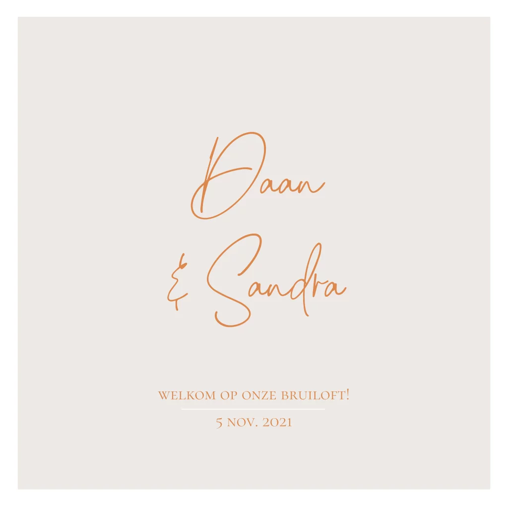 Vierkant zandkleur tuinbord met koperkleur tekst.