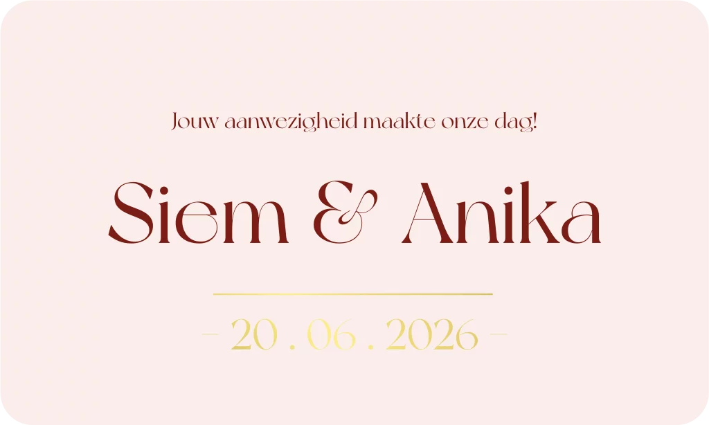 Geef jullie bruiloft een uniek tintje met een gepersonaliseerd wijnetiket! Perfect als originele save the date, een bijzondere manier om jullie getuige of ceremoniemeester te vragen, of als speciaal aandenken voor jullie gasten.