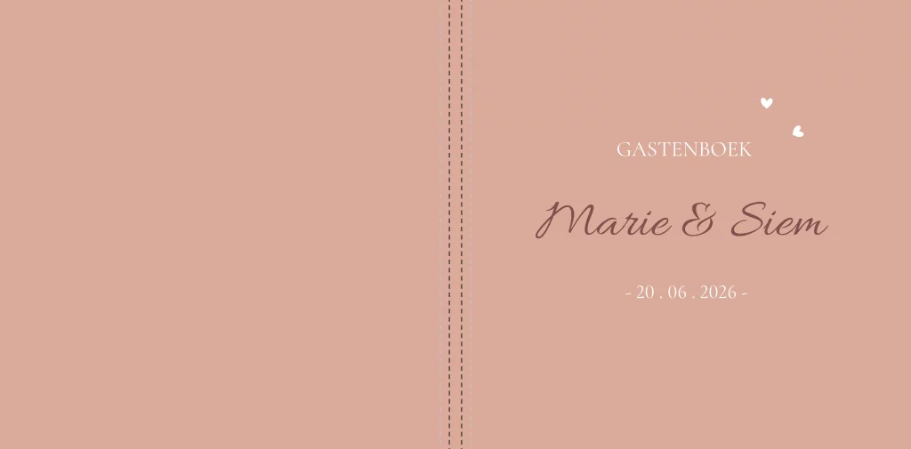 Chique gastenboek met oudroze achtergrond en witte tekst. Pas het boek helemaal naar wens aan in de online editor!