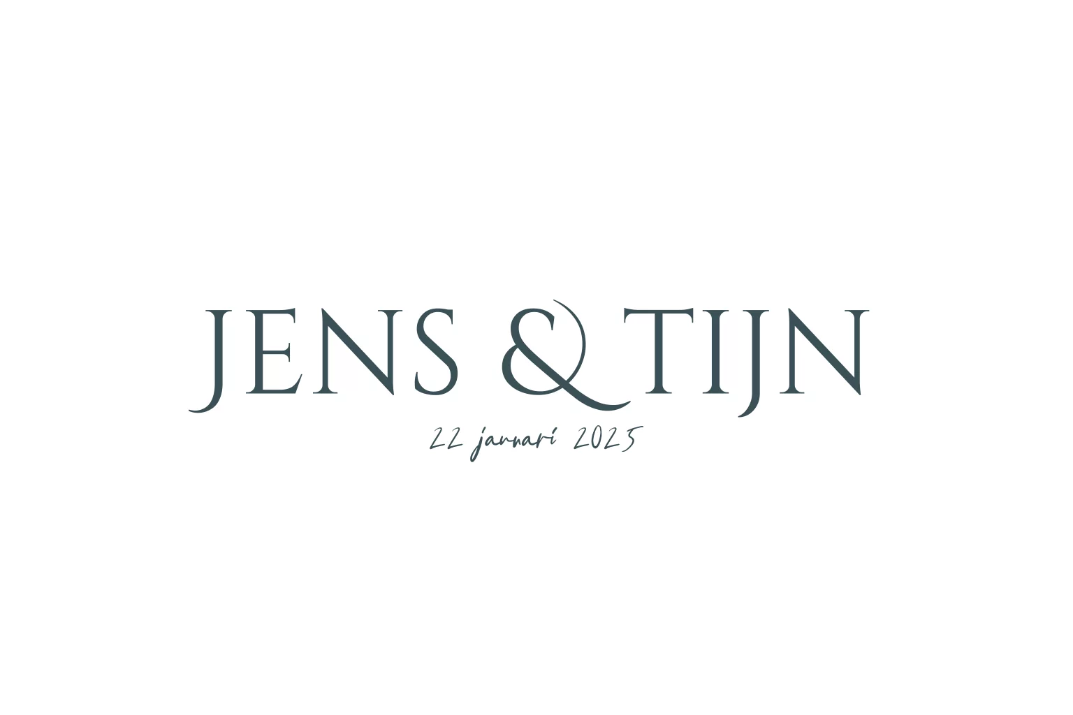 Minimalistisch geboortekaartje voor jongens met ronde hoeken en blauwe tekst. Jongensnamen Jens & Tijn.