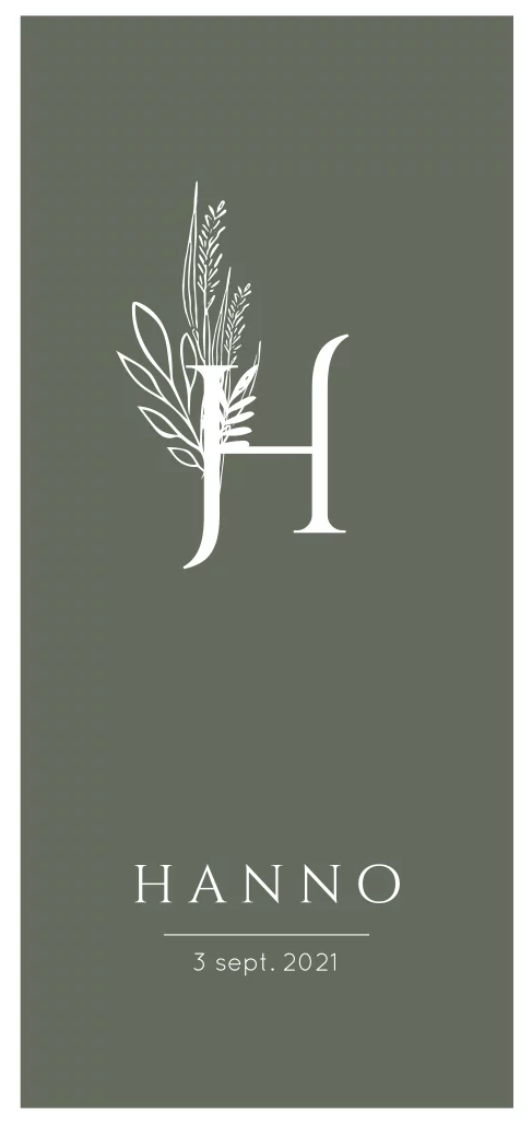 Strak en lief geboortekaartje voor een jongetje! Het kaartje heeft een donkergroene achtergrond en een groot initiaal van de naam op de voorkant.