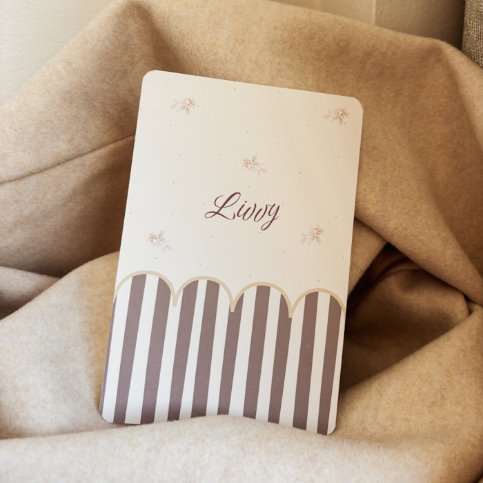 Lief nostalgisch geboortekaartje met strepen en bloemetjes