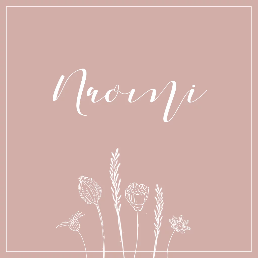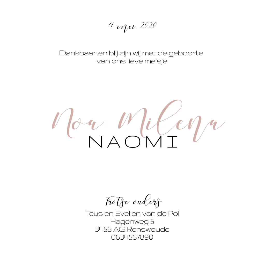 Lief geboortekaartje in oudroze met veldbloemen en een witte rand.