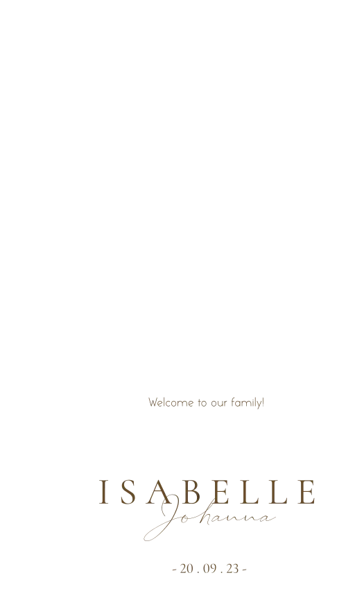 Geboortevlag in het formaat 60x60x120 met een witte achtergrond en bruine tekst. Deze vlag past bij het kaartje van Isabelle Johanna dat online staat!