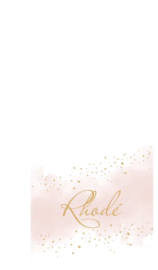 Geboortevlag in het formaat 60x60x120 met een roze vlek en gouden spetters. Deze vlag past bij het kaartje van Rhode dat online staat!