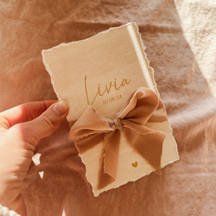 DIY geboortekaart met linnenlook scheprand