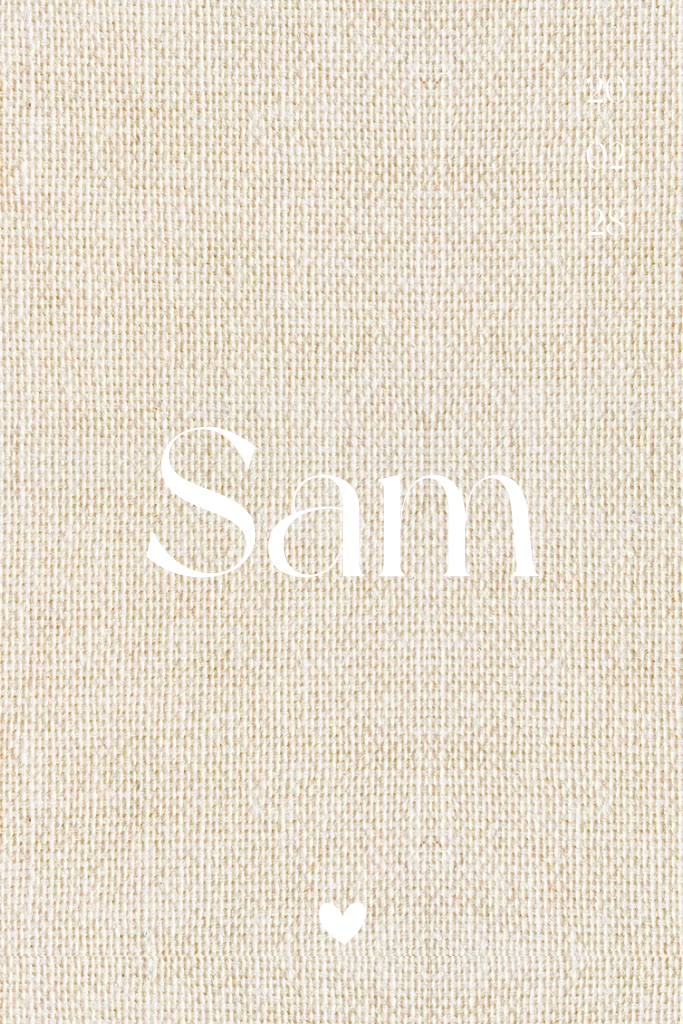 Lief dubbel geboortekaartje voor een jongetje met goudfolie en een linnenlook achtergrond. Pas het ontwerp naar wens aan in de online editor!