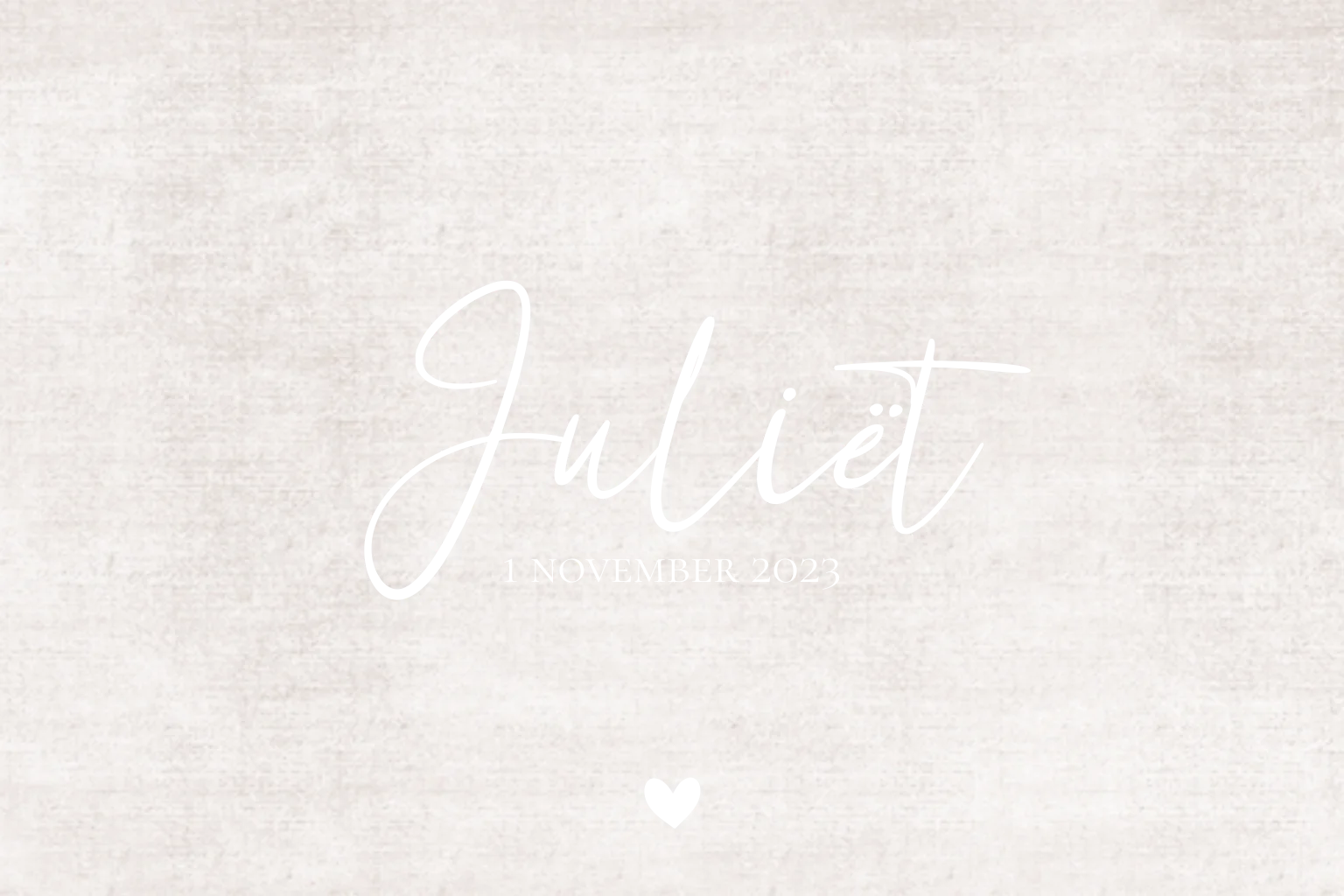 Dubbel linnenlook geboortekaartje met goudfolie voor een meisje. Je kunt de kaart helemaal naar wens aanpassen in de online editor.