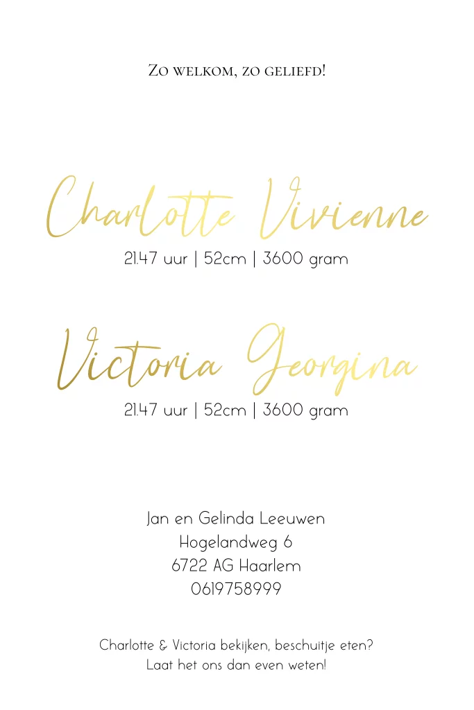 Geboortekaartjes met dubbelzijdige goudfolie