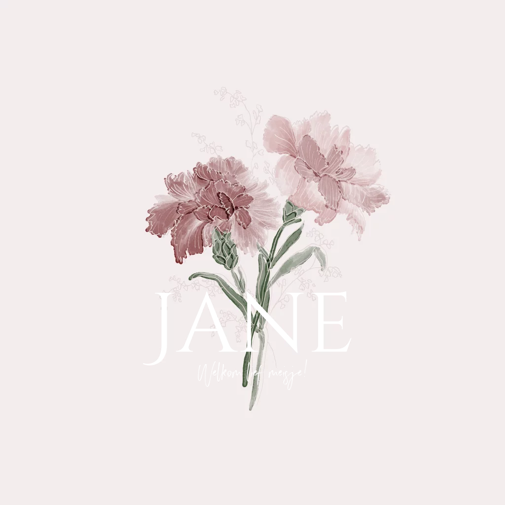 Geboortebloem geboortekaartje met de bloem van januari: de anjer.