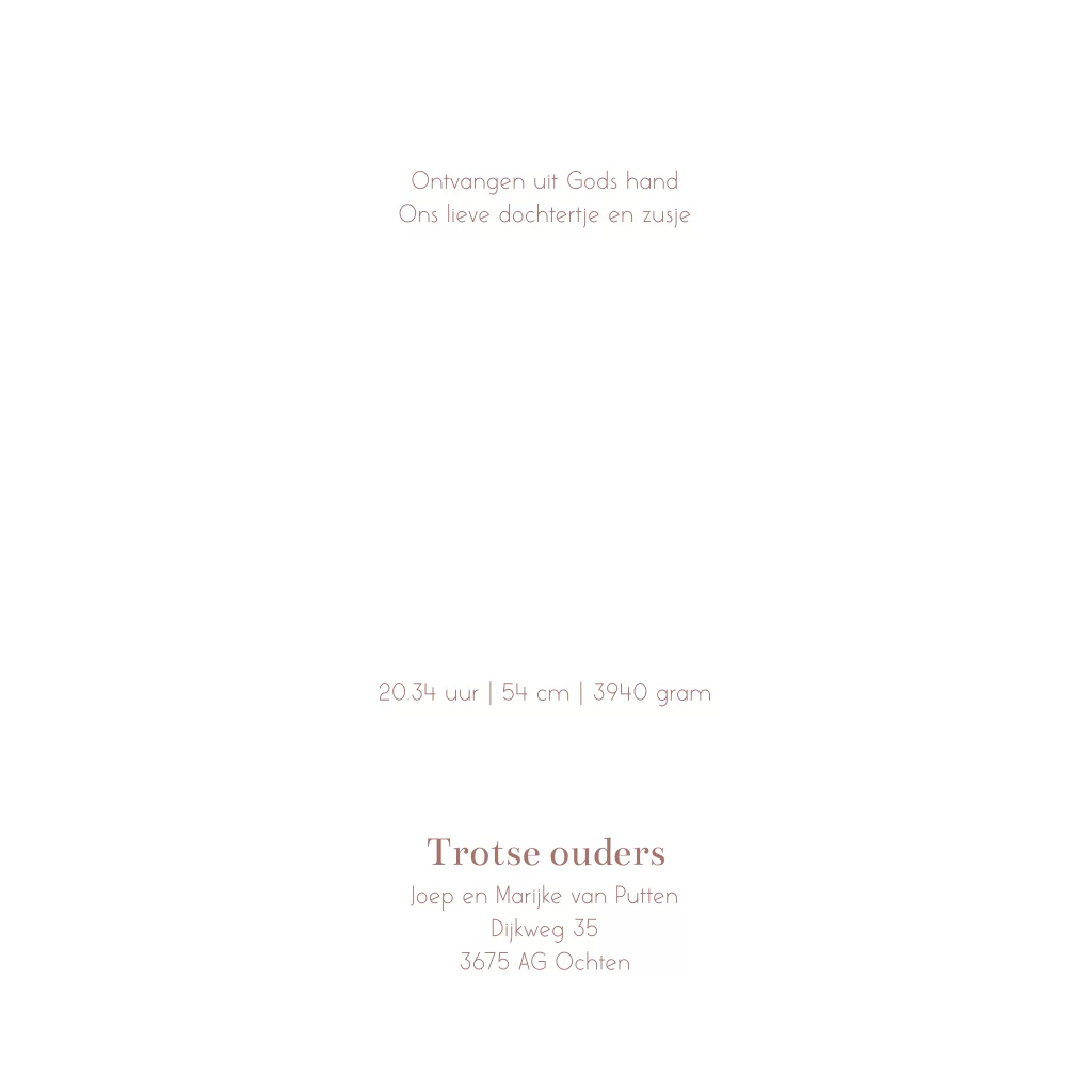 Geboortekaartje voor een meisje met de geboortebloem van januari en goudfolie. Pas deze kaart naar wens aan in de online editor.