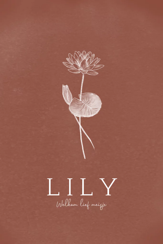 Geboortebloem geboortekaartje met een waterlelie; de geboortebloem van juli.