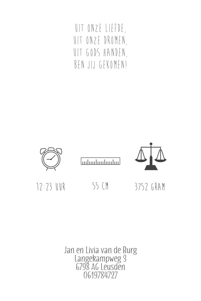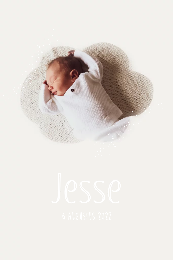 Lief geboortekaartje voor een jongetje met een foto en een wolkje.