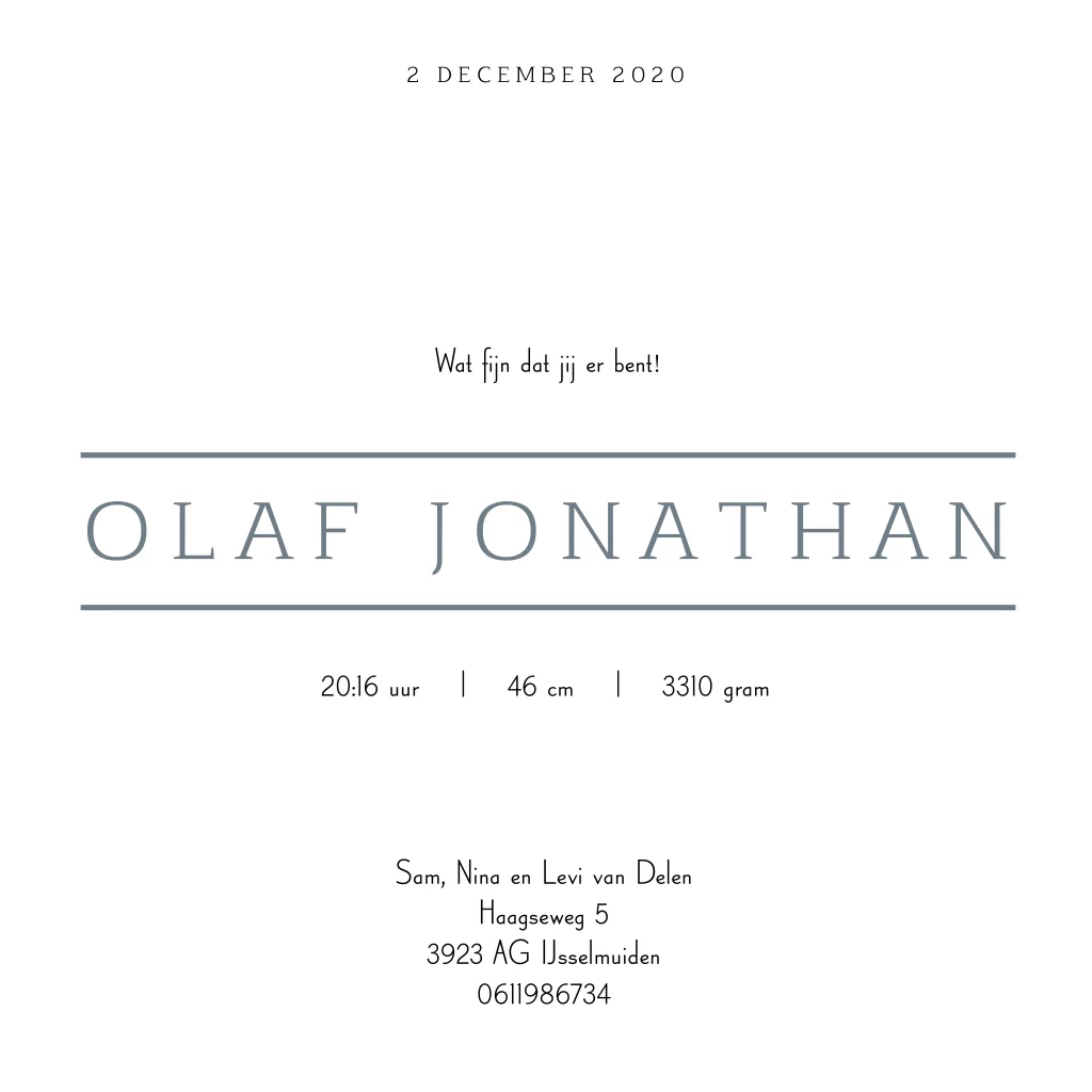 Dit vierkante grijsgroene geboortekaartje is lief, strak en stoer tegelijk! Met deze tekst is het kaartje leuk als geboortekaartje voor een broertje.