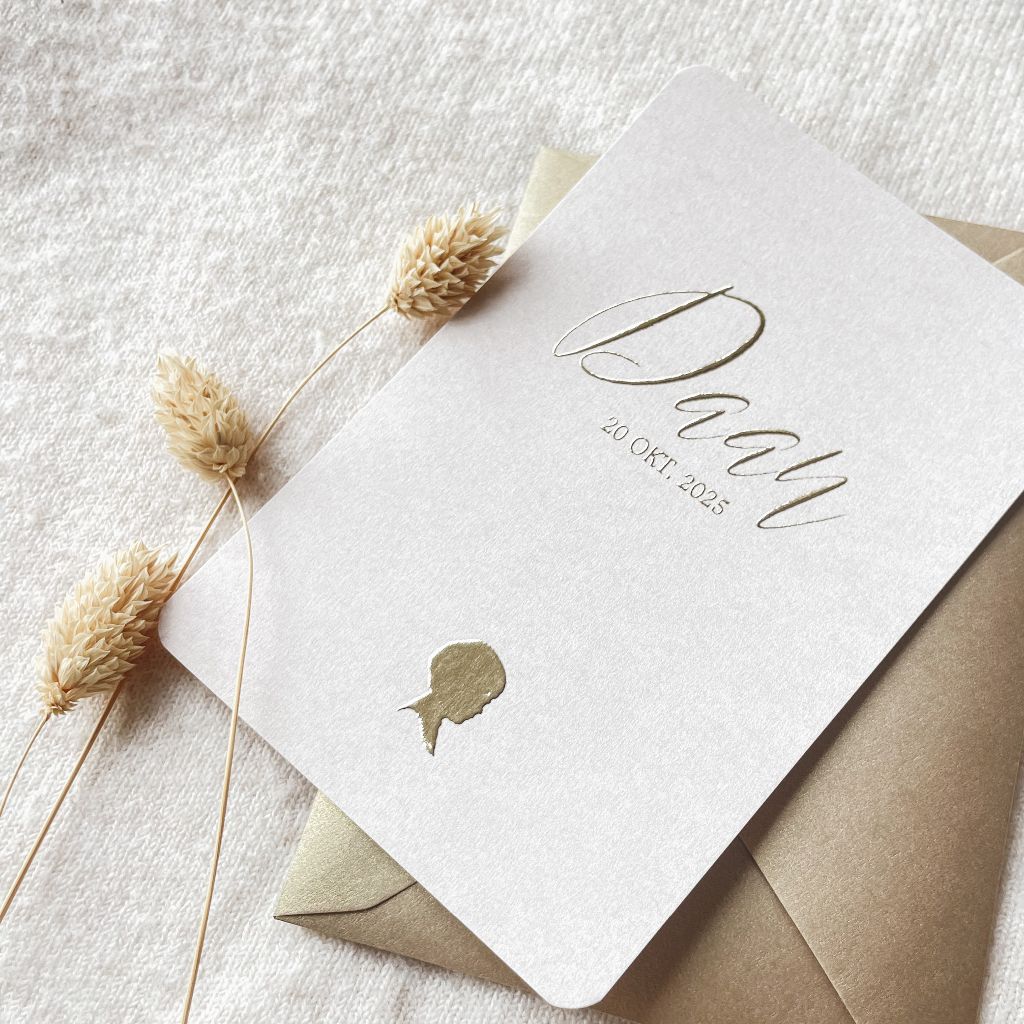 Geboortekaartjes met dubbelzijdige goudfolie