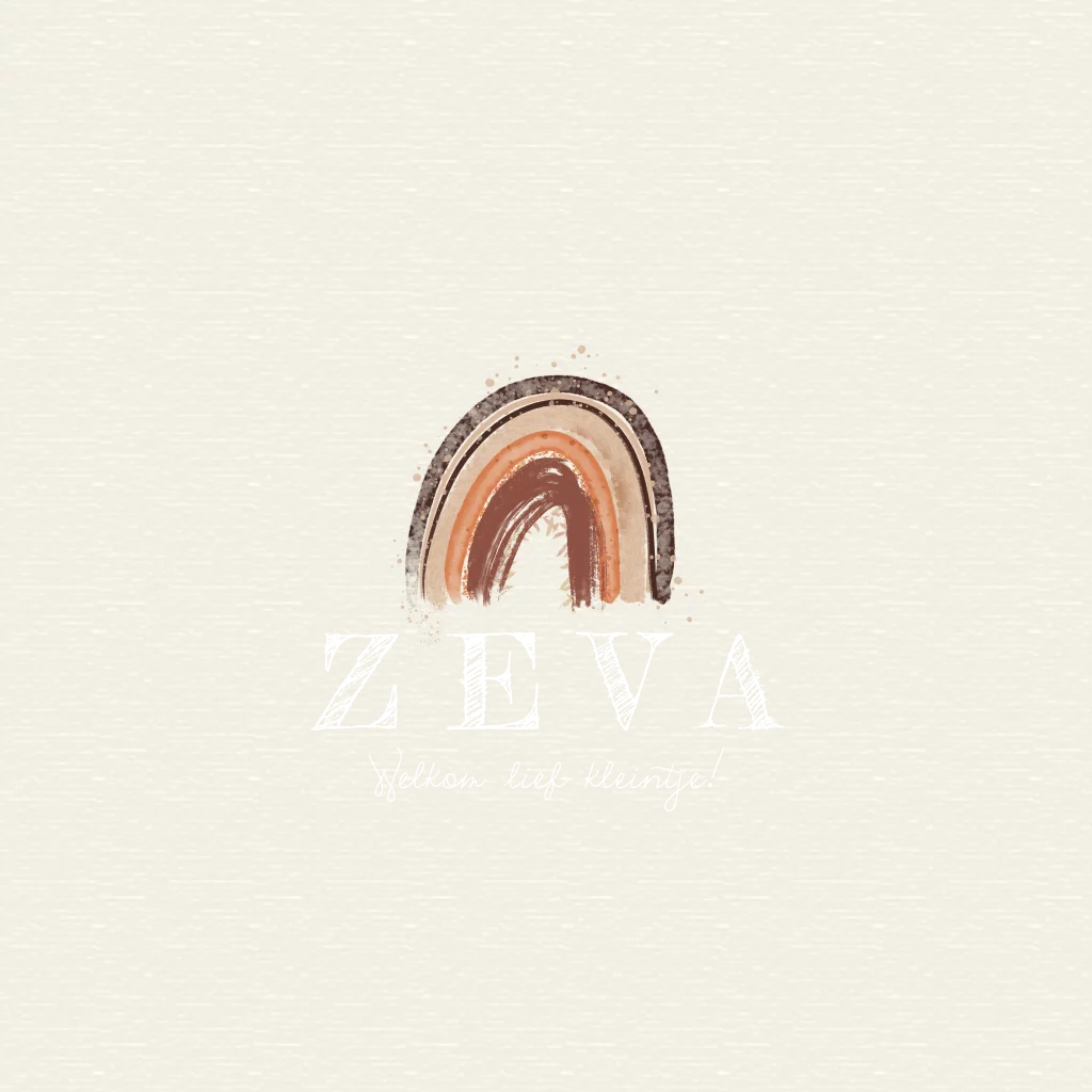 Lief geboortekaartje voor een jongetje in natuurlijke kleuren met een regenboog in waterverf en goudfolie.