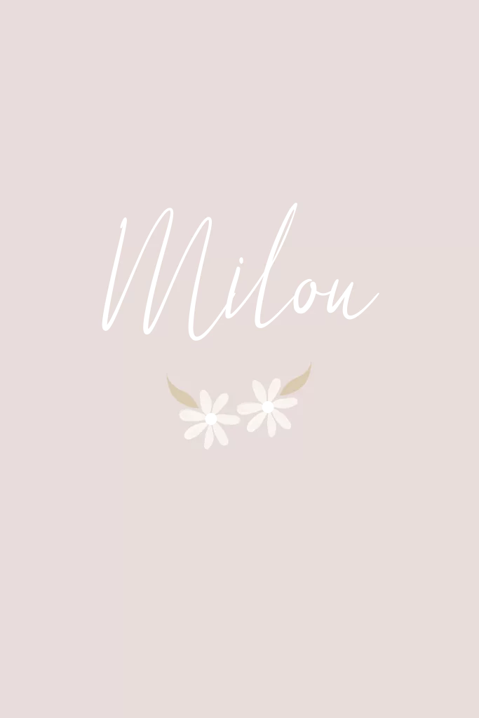 Lief geboortekaartje met bloemetjes voor een meisje. Minimalistisch ontwerp. Meisjesnaam Milou.