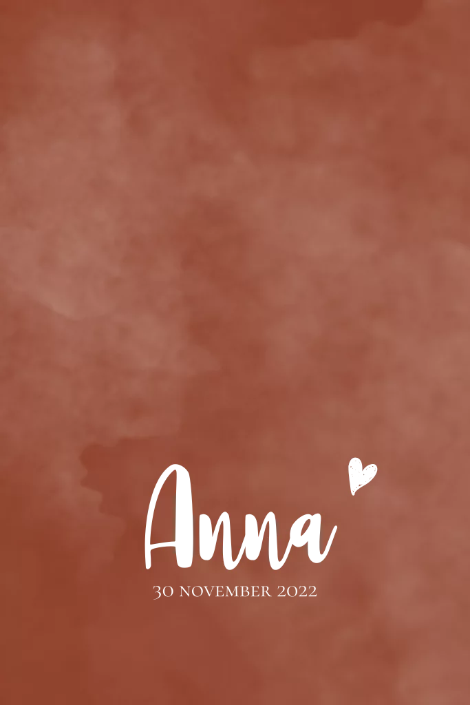 Lief geboortekaartje voor een meisje met roestkleur achtergrond en goudfolie.