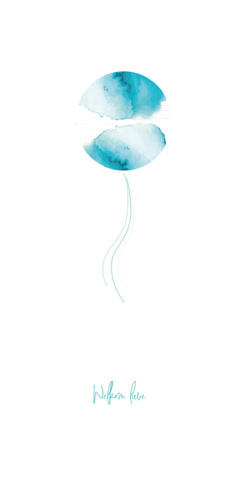 Lief geboortekaartje met een blauwe ballon voor een jongetje. Het kaartje is naar wens aan te passen door een achtergrondkleur toe te voegen of te kiezen voor een andere kleur foliedruk.