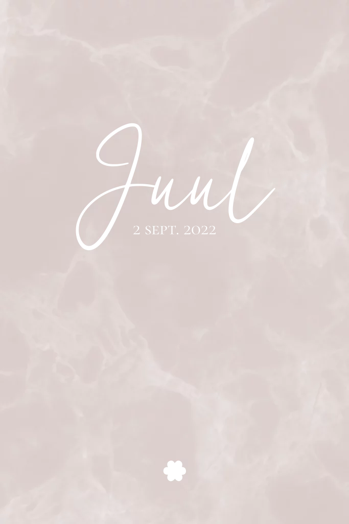 Lief geboortekaartje voor een meisje met een roze achtergrond met marmerlook. Met goudfolie en een klein bloemetje.