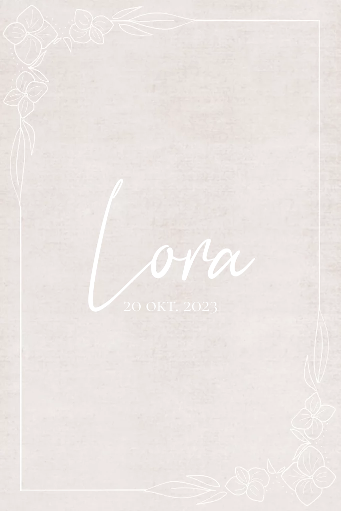 Lief geboortekaartje voor een meisje met zandkleur linnen look achtergrond en goudfolie. Op de voorkant een datum en naam in goudfolie.
