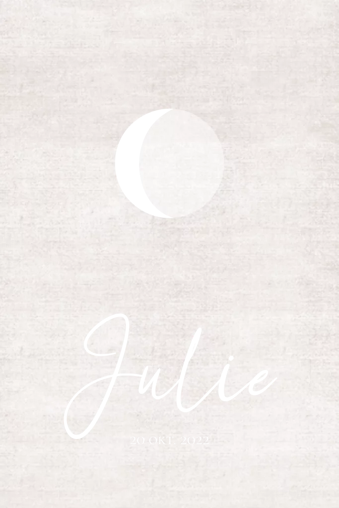 Lief geboortekaartje voor een meisje met zandkleur linnen look achtergrond en goudfolie met maanstand. Op de voorkant een datum en naam in goudfolie.