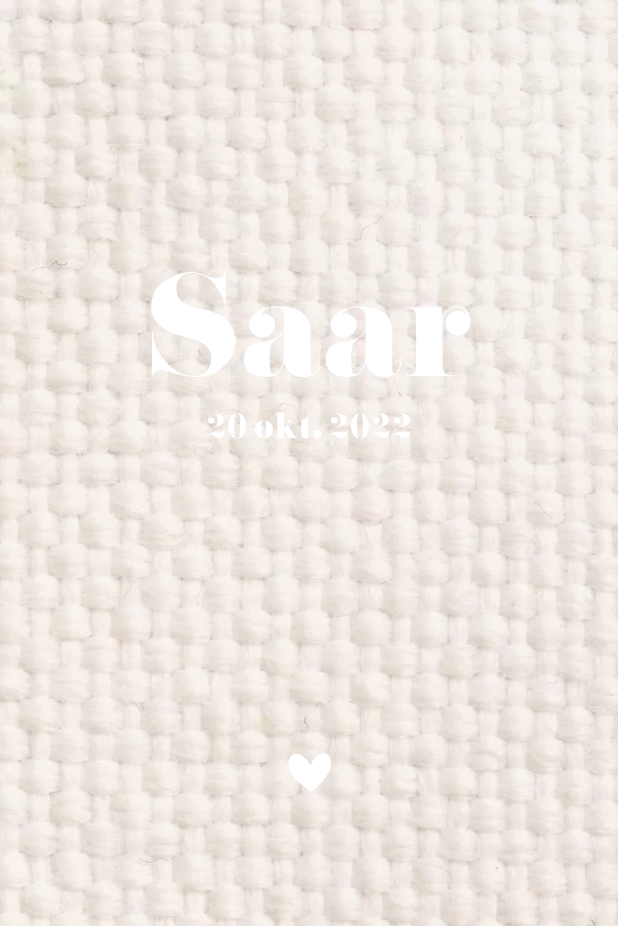 Lief geboortekaartje voor een meisje met zandkleur gebreide look achtergrond en goudfolie. Op de voorkant een datum en naam in goudfolie.