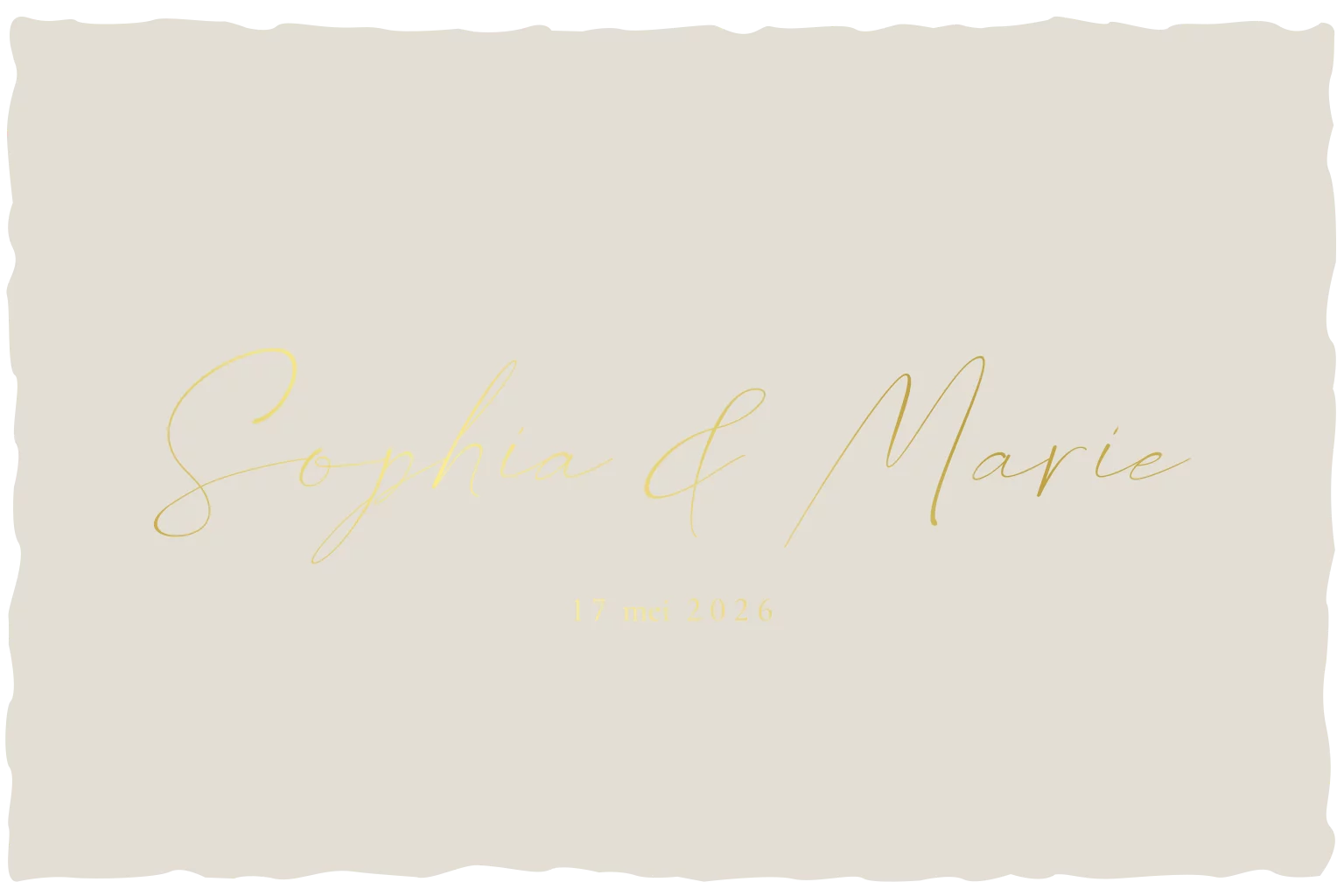 Geboortekaartje met look a like scheprand en goudfolie. Deze geboortekaart is voorzien van een gekartelde rand en de naam is gedrukt in een sierlijk lettertype in goudfolie.
