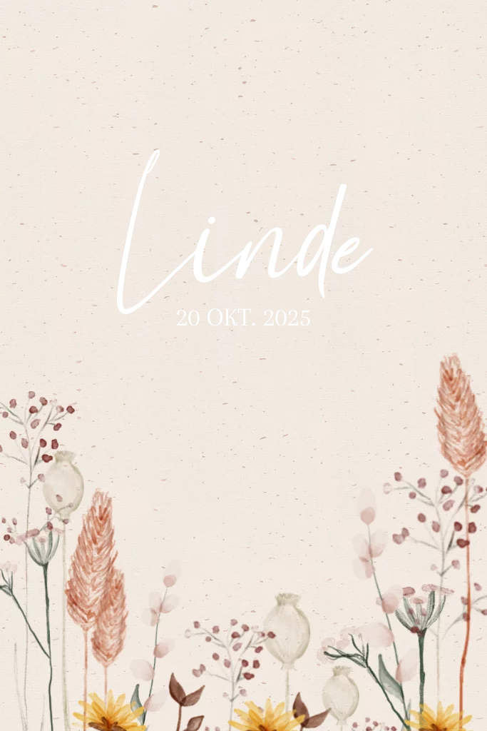 Vrolijk geboortekaartje voor een meisje met bloemen en een vintage achtergrond met structuur. Dit kaartje met goudfolie is het mooiste op linnen papier!