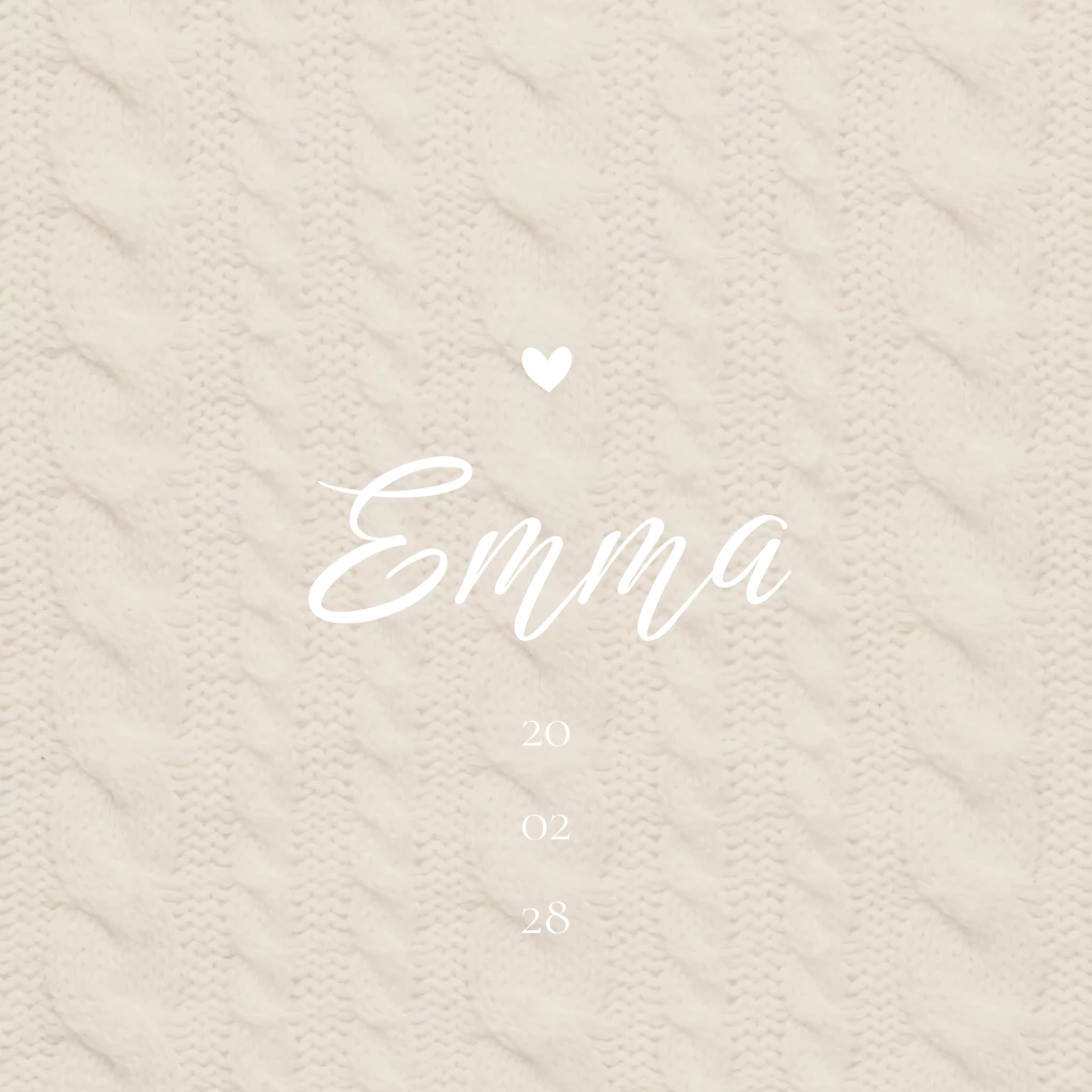 Winters geboortekaartje voor een meisje met kabelpatroon. Gezellige look door de achtergrond.