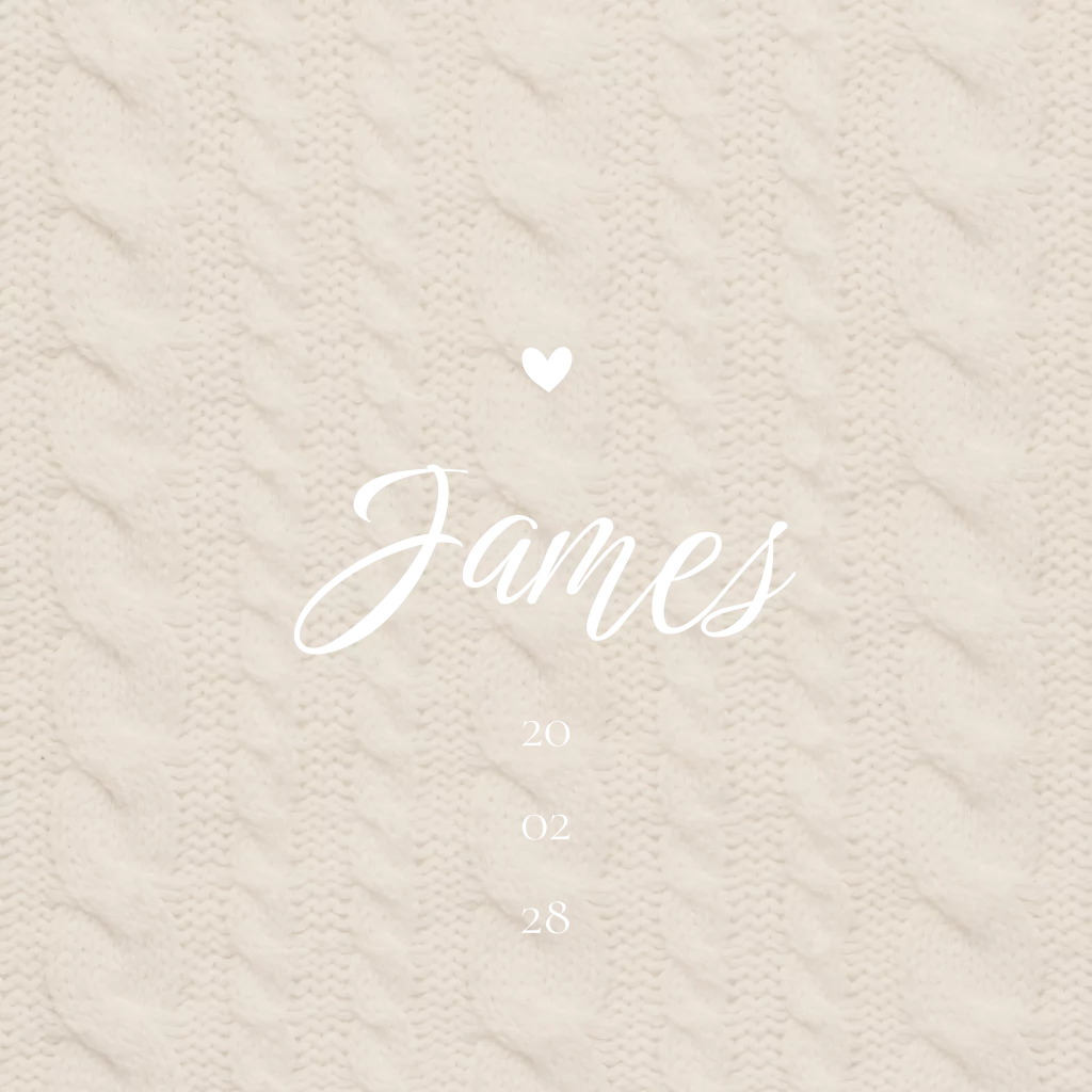 Winters jongens geboortekaartje met kabelpatroon